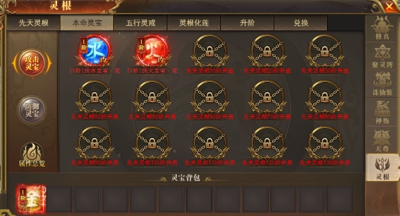 提升等级:提升灵宝总等级可前往更高层灵根源境。