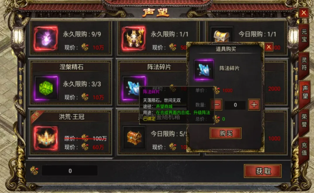 兑换建议:在声望商城刚开放时,优先兑换阵法碎片,提升阵法等级。