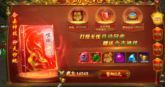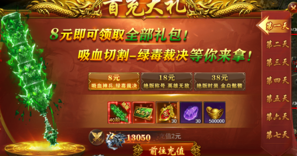 购买8元首充大礼,获取吸血神兵。吸血神兵在前期非常实用,可以大幅提升你的生存能力和输出效率,帮助你在打怪时更加轻松。