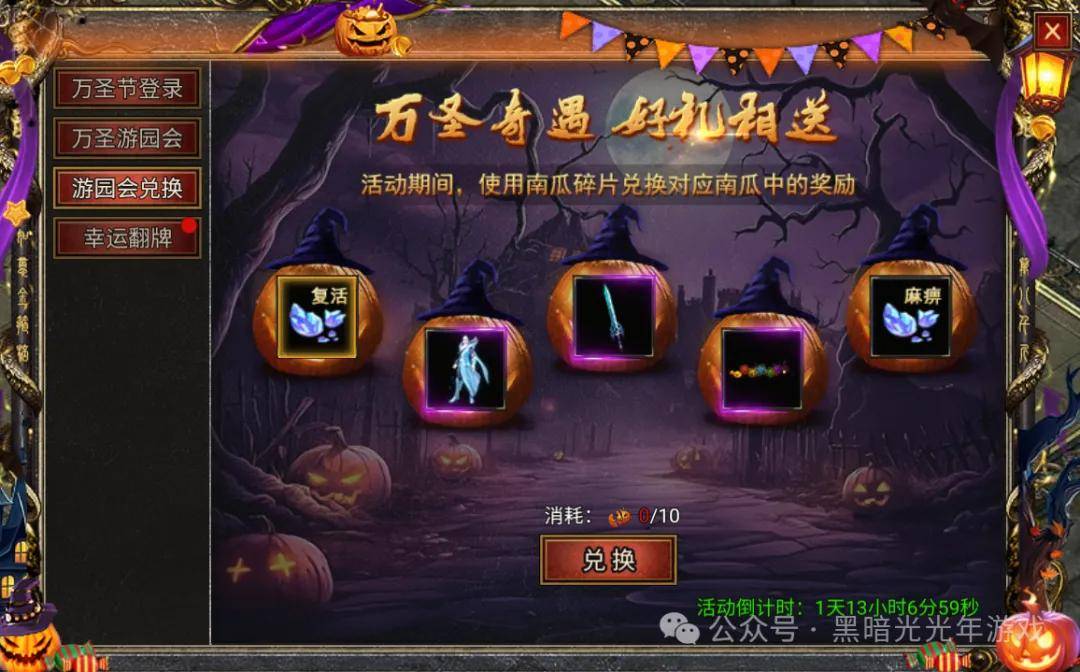 【活动内容】: 使用南瓜碎片兑换对应孔明灯内的奖励!