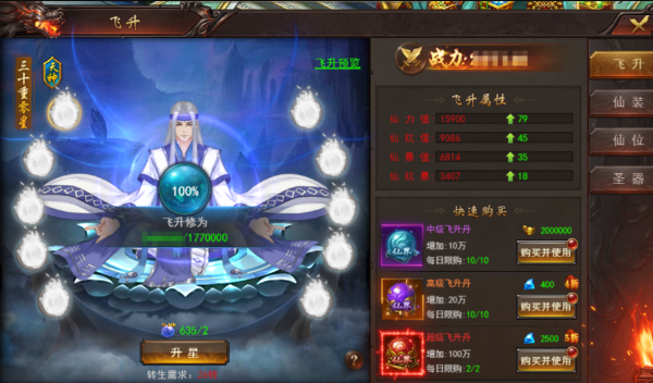 飞升等级是提升实力的基础,玩家应尽量提升飞升等级,以解锁更高级的仙装。