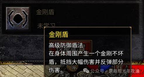 金刚盾:高级防御技,开盾抵挡大量伤害并反弹部分。
