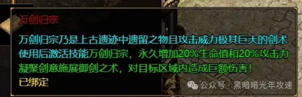 万剑归宗:激活永久加20%生命和20%攻击,,对目标区域内造成巨额伤害!