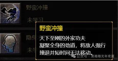 野蛮冲撞:强制位移神技,撞退敌人并让其短时间定身,PK打断和保命都好用。