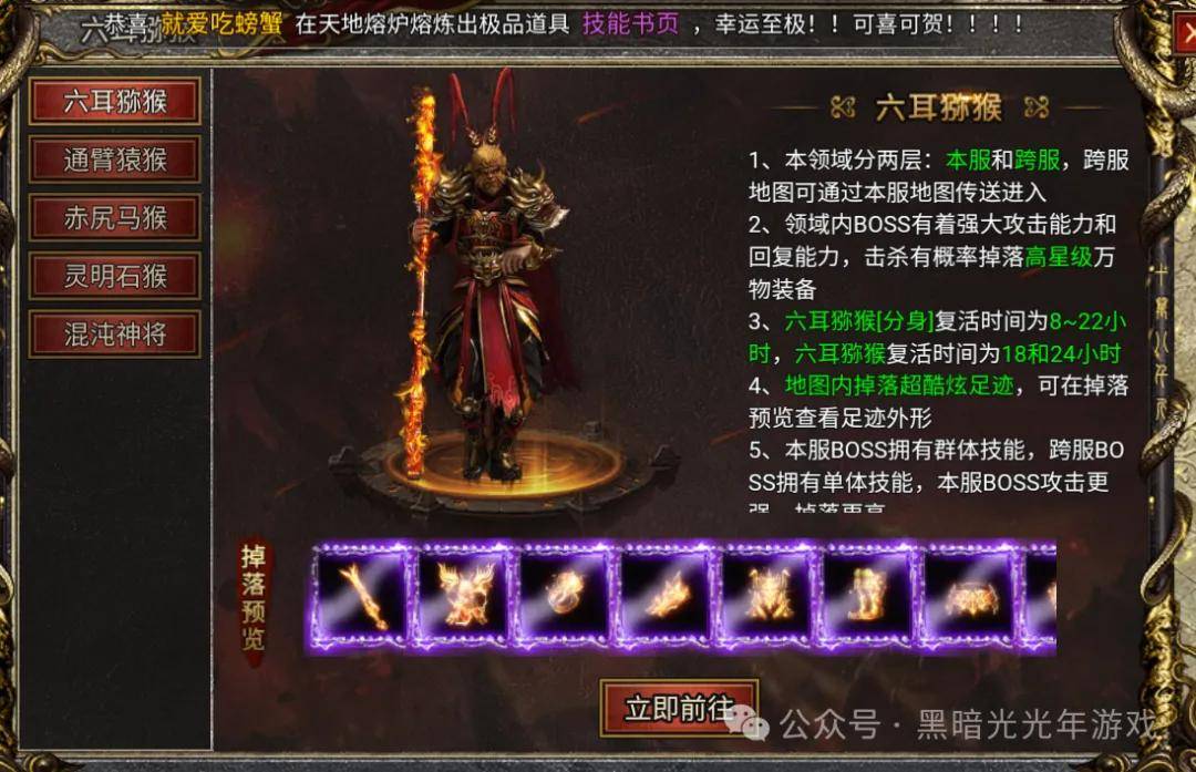 以上就是黑暗光年白蛇传奇游戏中六耳猕猴的相关玩法介绍,希望能给大家带来帮助!更多游戏攻略、游戏福利礼包尽在【黑暗光光年游戏】哟!