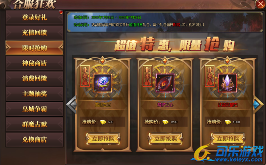 活动内容:活动期间,每日可购买各种超值特惠礼包,每个礼包每日限购1次,机不可失。